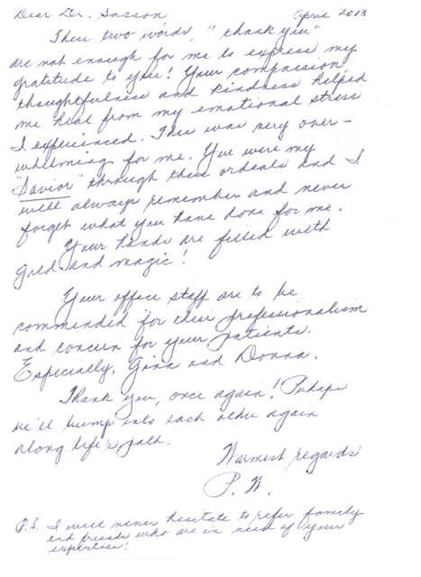 These two words “thank you” are not enough to express my gratitude to you! Your compassion, thoughtfulness and kindness helped me heal from my emotional stress I experienced. This was very overwhelming for me. You were my “Savior” through this ordeal and I will always remember and never forget what you have done for me.